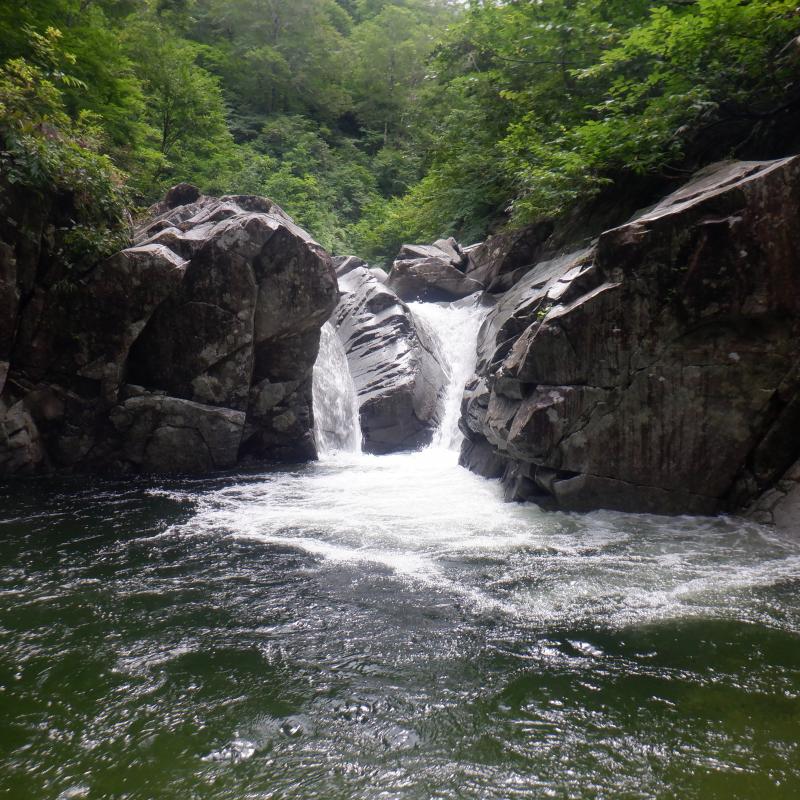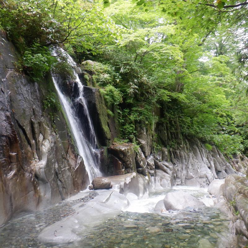 優雅な3つの大滝と変化に富んだナメ・瀞・淵が織りなす雄大なスケール感は秀逸です。