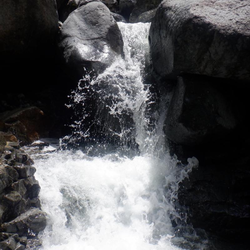 換気口を過ぎてしばらくすると、大釜をもつ3m滝が現れます。