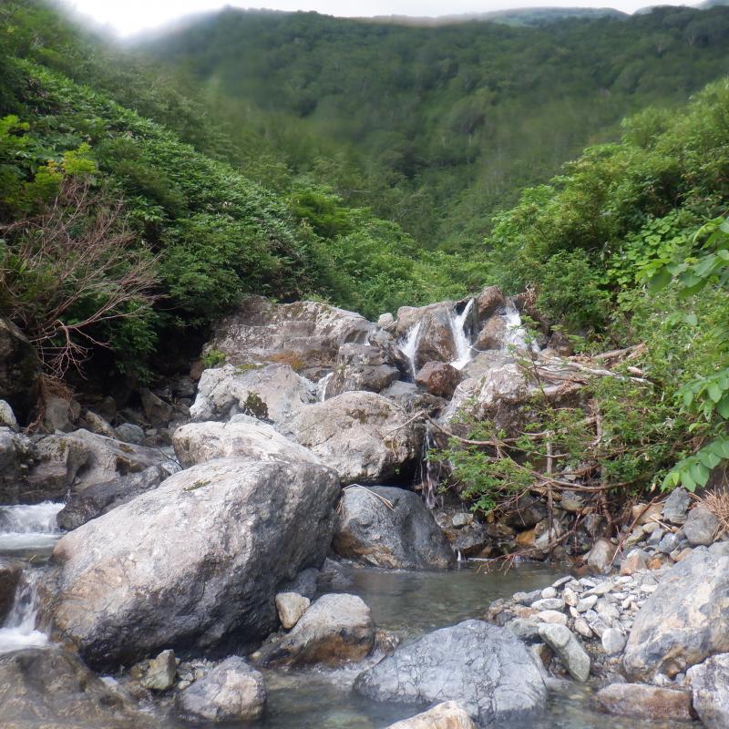 この沢は核心部に50mスラブをもつ右俣と、小滝・ゴーロ・スラブ帯の三つが楽しめる左俣に分かれます。