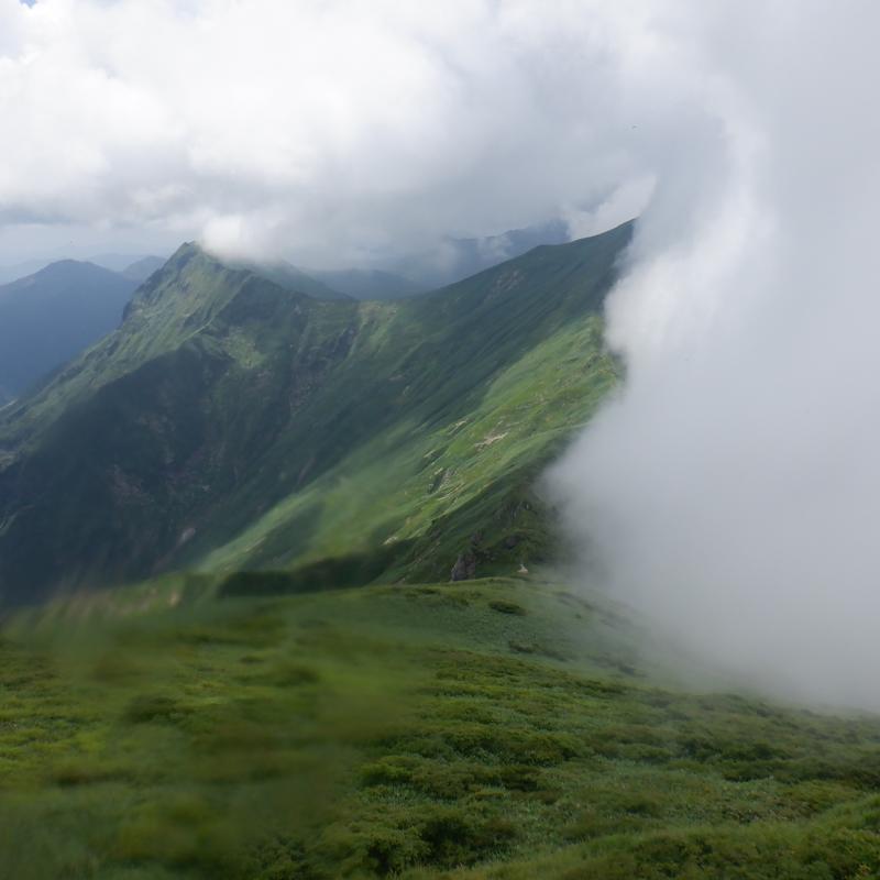 肩で息をしながら西に目を転じると、国境稜線に浮かぶ雲が印象的でした。