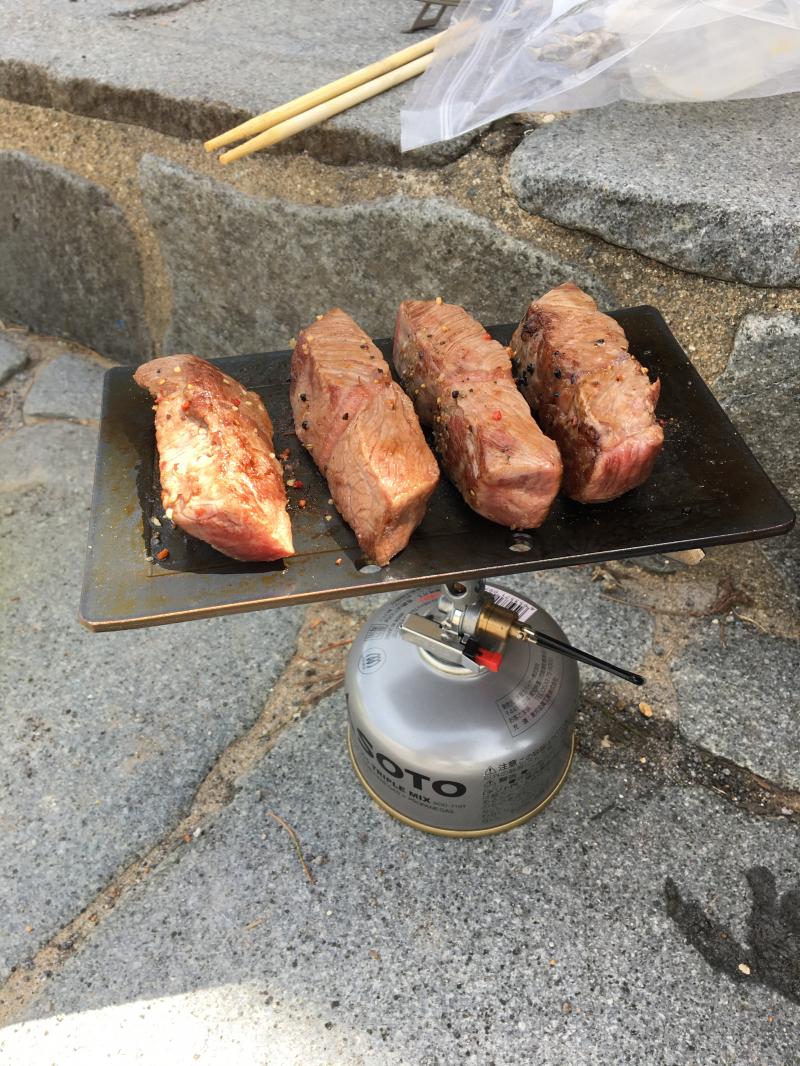 室堂で鉄板焼肉をして贅沢な昼ごはんを食べて下山。