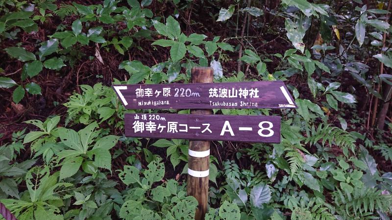 - 筑波山神社-(5分)-宮脇-(70分)-男女川源流-(30分)-御幸ケ原-(20分)-女体山-(20分)-御幸ケ原-(25分)-男女川源流-(55分)-宮脇-(5分)-筑波山神社