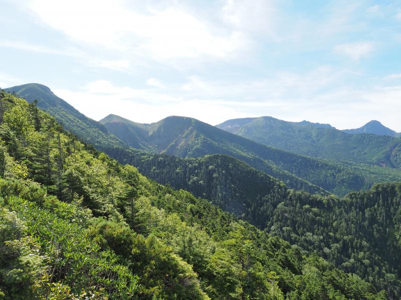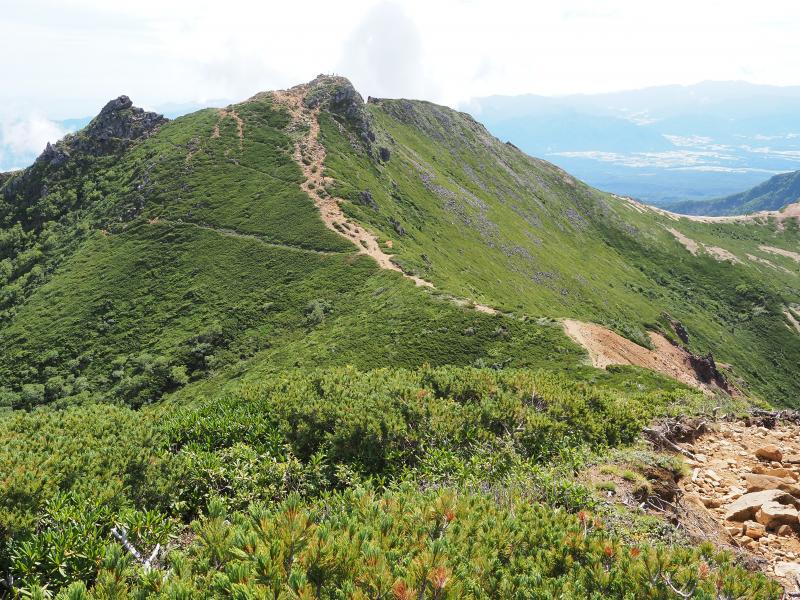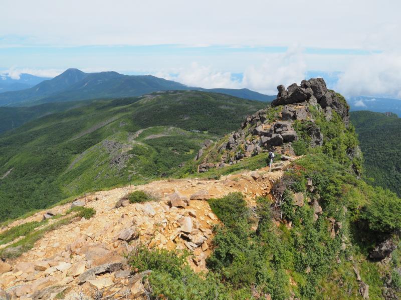 苔と白樺の樹林帯をさっさか歩いて稜線へ。前日の雨で樹林帯は少し湿った感じ。第一展望台に着いて景色が開けました。赤岳・横岳・硫黄岳など南八ヶ岳がよく見えます。そして第二展望台を過ぎて西天狗手前の岩場へ。根石岳山荘も見えてきました。相変わらずすごいとこに建っています。岩場を歩き抜けて西天狗岳に到着。目の前に東天狗岳。ちょっと休憩して東天狗岳、そして根石岳へ。西天狗東天狗岳間は少し走れそうなので軽くRun♪でもすぐ登りなのでまた歩く(笑)時間はあるのでさらに根石岳へ。緑の網梯子を過ぎてちょっとザレた下り、そして砂礫の道へ。この辺りは去年の10月に天女山から縦走してきた時以来ですね。根石岳から西天狗越しに北アルプスも良く見えていました♪ちょっと雲は多めで高曇り状態。東天狗はやっぱり人多めですね。東天狗岳に戻って、天狗の奥庭経由で黒百合ヒュッテへ。岩ゴロゴロゾーン、でも安定した岩が多いので比較的歩きやすい。トウヤクリンドウが結構数咲いてました♪