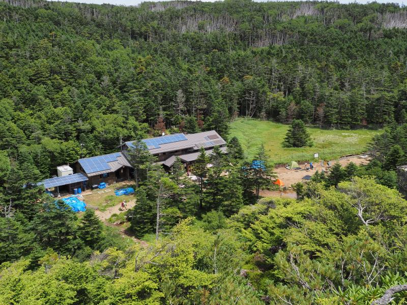 黒百合ヒュッテが空いてたら山小屋の軽食メニューでも食べようかと思ってましたが、やっぱり結構な人がいたので軽食は諦め、行動食で済ませ下山。あとは黒百合ヒュッテから唐沢鉱泉に下るのみ。