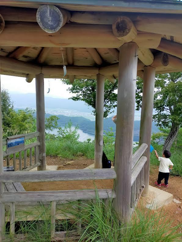 山頂には東屋が建っていて、眼下に湖が見えていました。