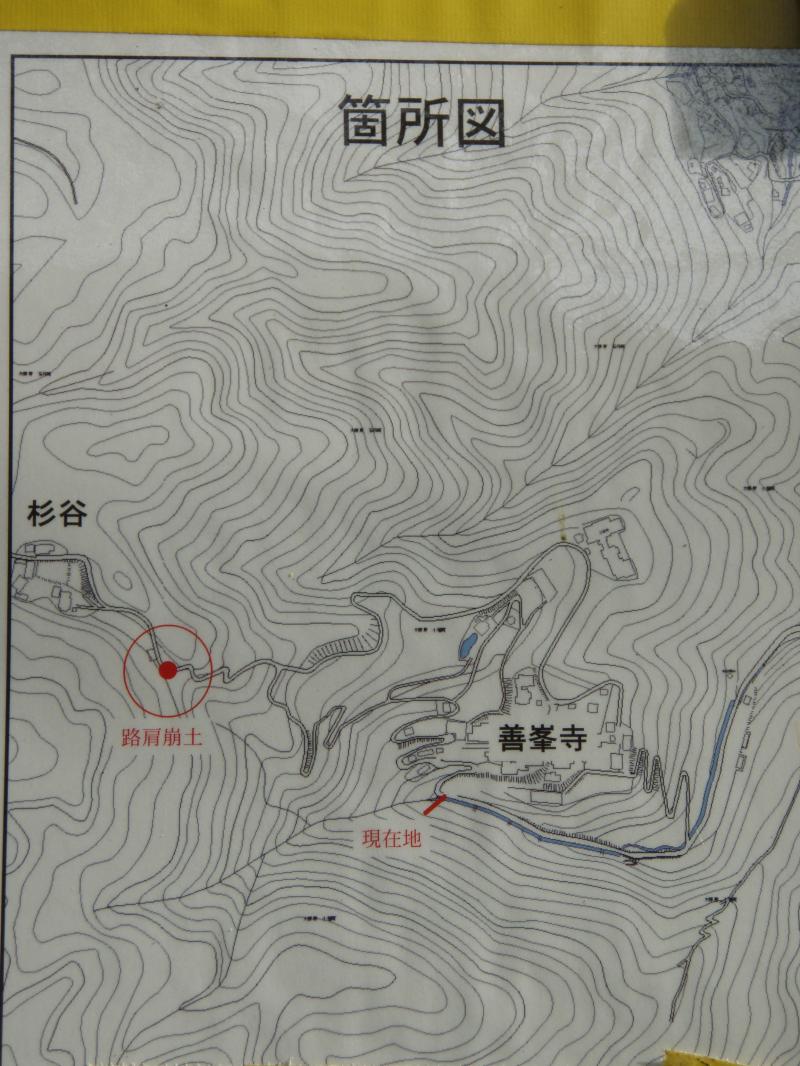 善峯寺から杉谷への府道が土砂崩れで通行止めになっています(9/7現在)。