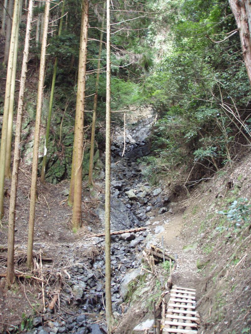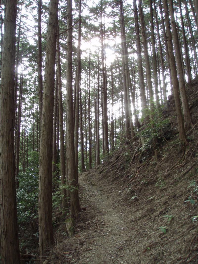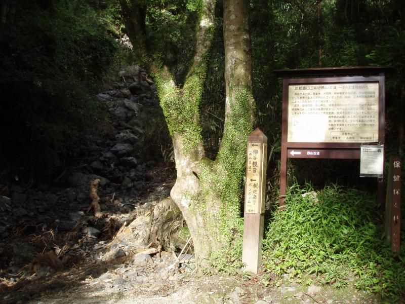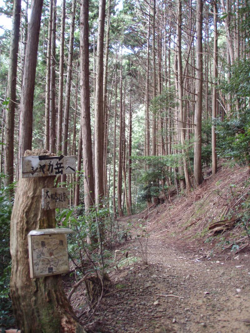 善峯寺から杉谷への府道が土砂崩れで通行止めになっている為、西山古道の分岐から入山。久しぶりの西山古道でしたが、足場の悪いところには木橋も架けられており整備が行き届いていました。45分ほどで大沢峠に到着。