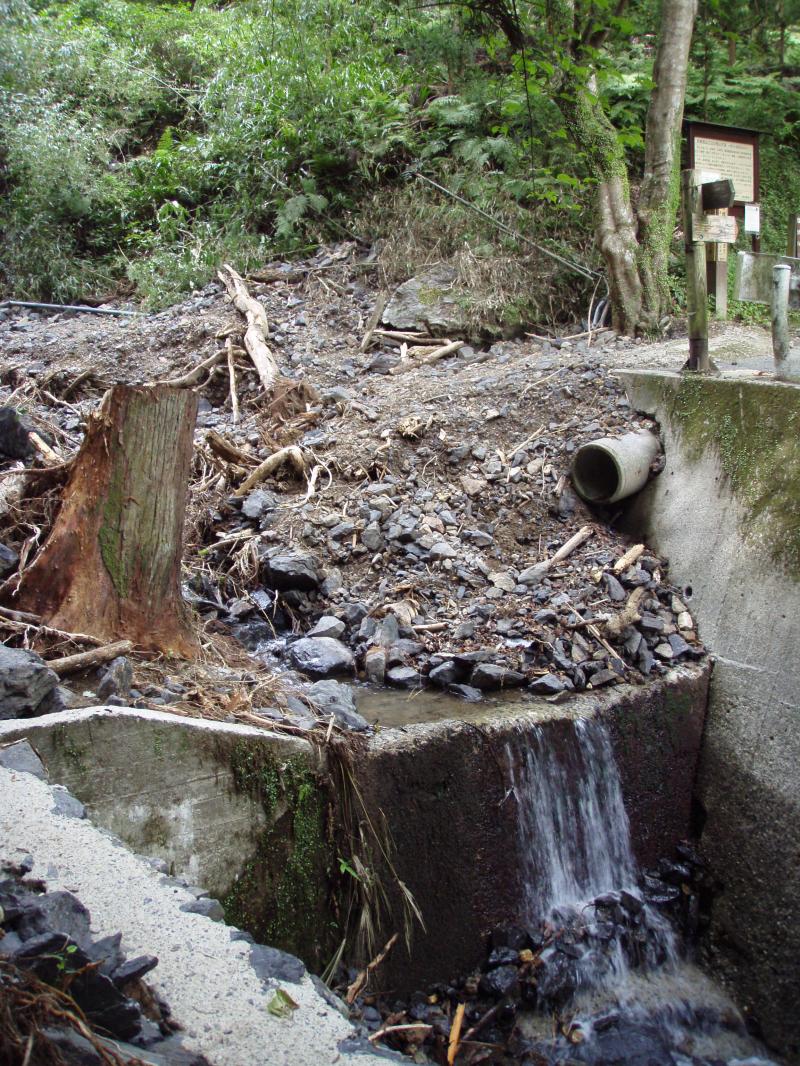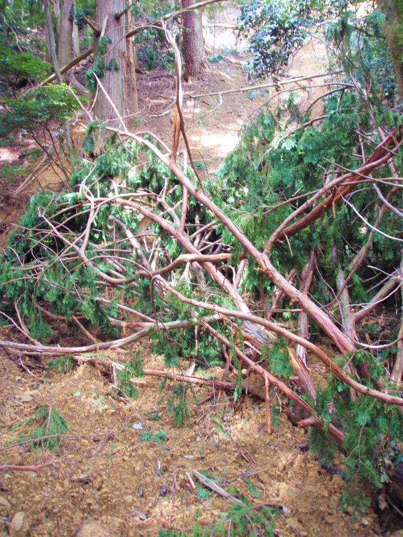 - 8月中旬から10日間近く雨が降り続き累積雨量が700ミリぐらいあった為、地盤が緩み土砂崩れが複数箇所で発生しています。