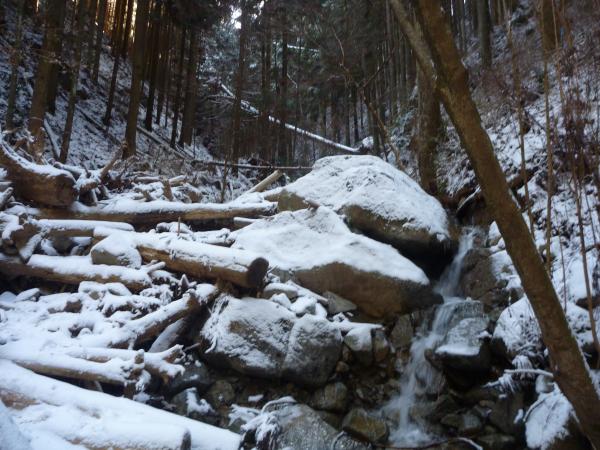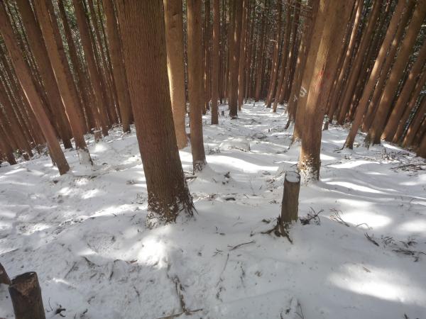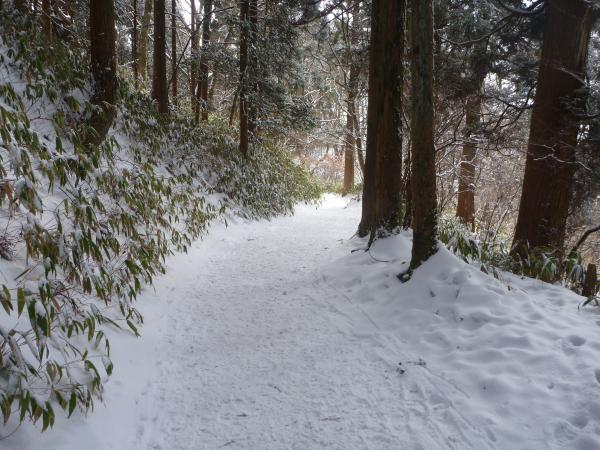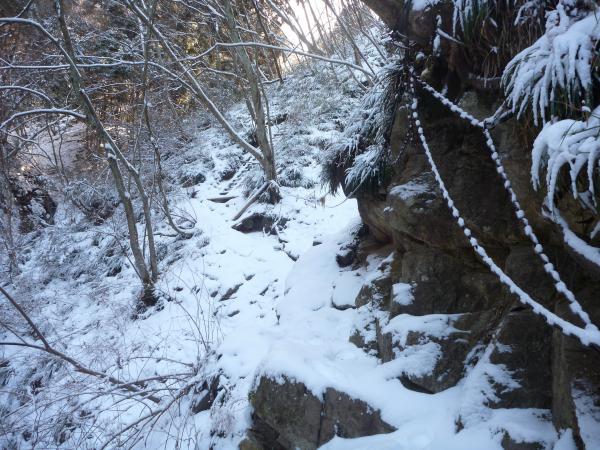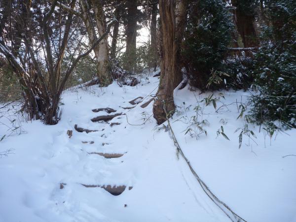下りの文殊尾根方面は、道も踏み固められ滑り易くなっております。