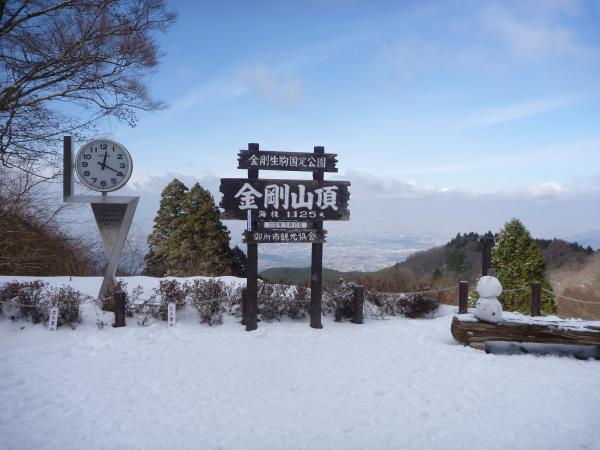 - 金剛登山口バス停<10>タカハタ道への分岐(車止め)<20>カトラ谷への分岐<70>金剛山山頂<7>