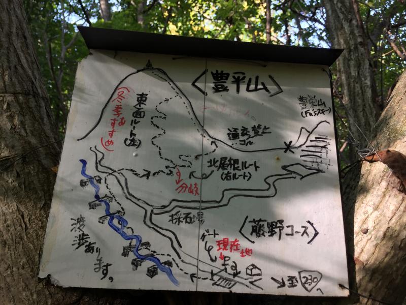 後日、八剣山の山頂から景色を眺めていて、街をはさんで南の方に鋭く盛り上がった山があったので地図で見てみるとそれが豊平山でした。