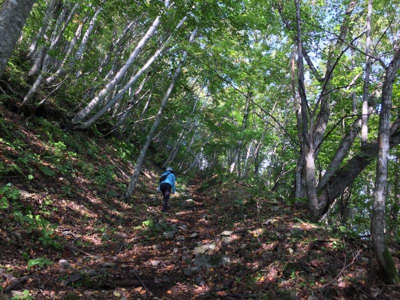 今にもヒグマが出そうな沢沿いの登山道から、パンチの効いた急登、展望の良い山頂。