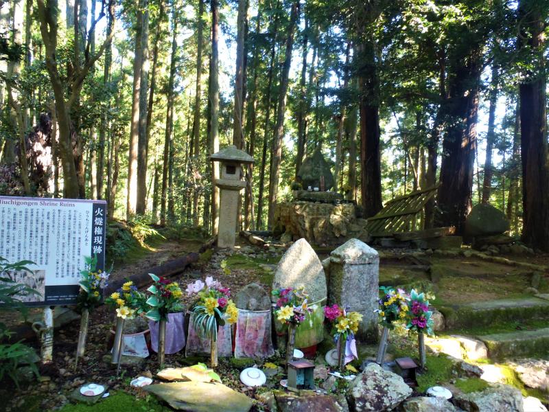 - 清滝バス停 ⇒10分⇒ 表参道登山口 ⇒15分⇒ 火燧権現跡 ⇒40分⇒ 25丁目なかや跡 ⇒65分⇒ 水尾わかれ ⇒25分⇒ 黒門 ⇒15分⇒ 愛宕神社 ⇒5分⇒ 月輪寺コース分岐 ⇒35分⇒ 月輪寺 ⇒50分⇒ 月輪寺登山口 ⇒25分⇒ 清滝バス停