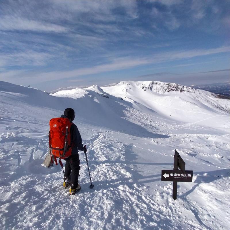本当はくろがね小屋に一泊の予定が予約がとれず、岳温泉に前泊して早朝出発日帰りのつもりが2日目の天候がイマイチで、1日目が快晴&風も弱め。福島交通観光の岳温泉・あだたら高原スキー場ダイレクトアクセスツアーバスを利用したのですが、あだたら高原スキー場着は10:00だったので下山が間に合うかバスの方とも相談しリフトを利用すれば間に合いそうということで天気が良い1日目に登ることにしました。結果快晴・風弱めでとても快適な雪山登山となりました。福島交通観光の添乗員さん・運転手さんは登山がスムーズにいくように気遣って下さり大変お世話になりました。ありがとうございます。