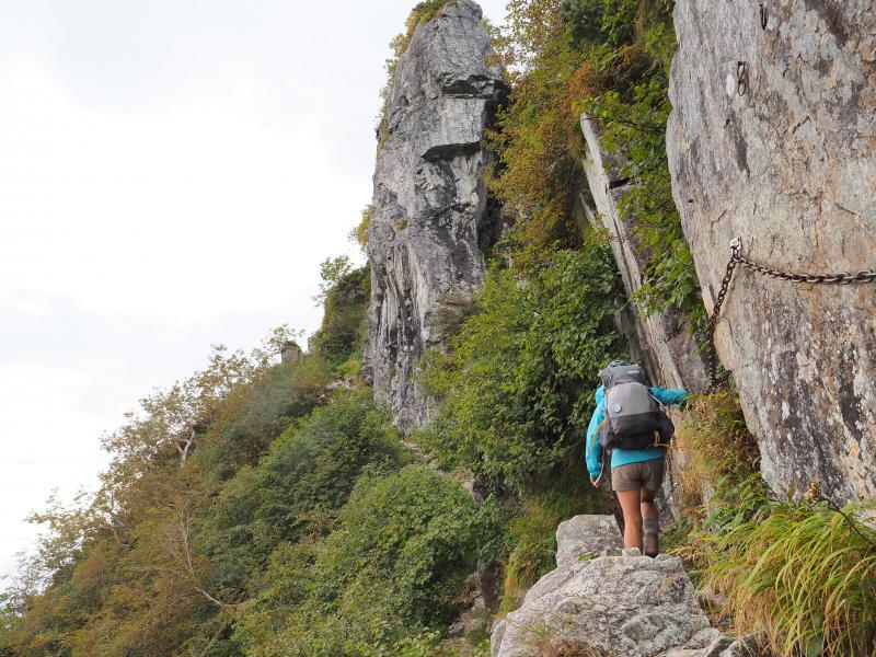 ・不帰一峰~不帰嶮~不帰二峰は足場の悪い岩場の連続。鎖場、梯子などもあり。