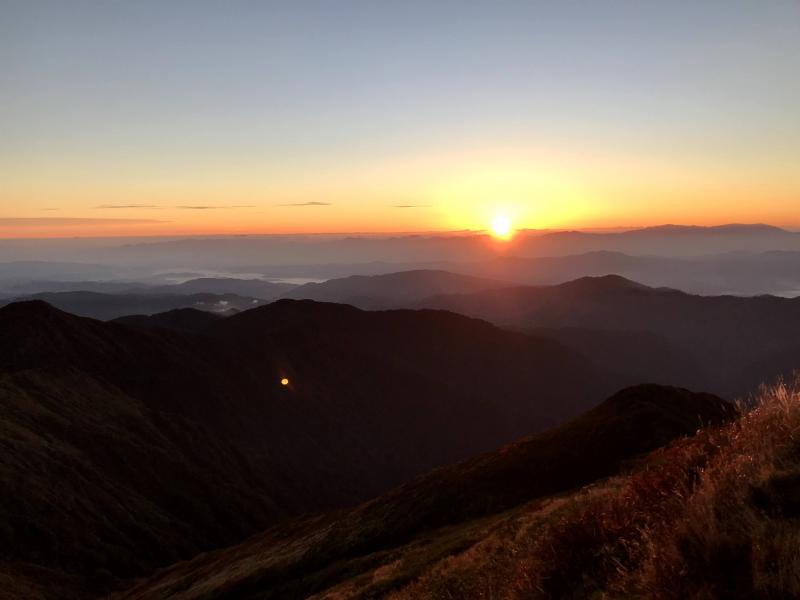 大朝日小屋で避難小屋泊。場所取って軽く昼食取って山頂へ。ちょっと雲が多くて周りの景色はあまり見えず…おかげでブロッケン現象が見れました♫一旦大朝日小屋に戻って軽く仮眠、そして夕食食べて夕景を見に再び山頂へ。久々に日の入りをしっかり見れた気がします。雲も綺麗に染まり、北東に見える月山、雲に隠れていた鳥海山も見えてきました。良い夕景でした。暗くなってきたので小屋に戻って就寝。
