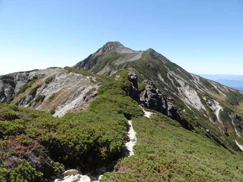 ⑩抜戸岳は主稜線から外れ、トラバース道から登山道はありますが、岩場とガレ道です