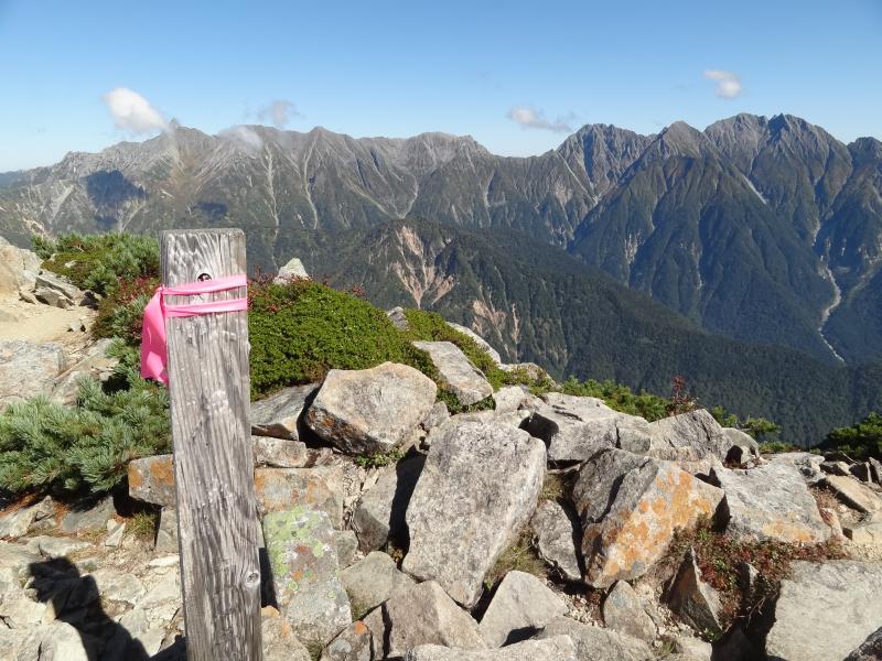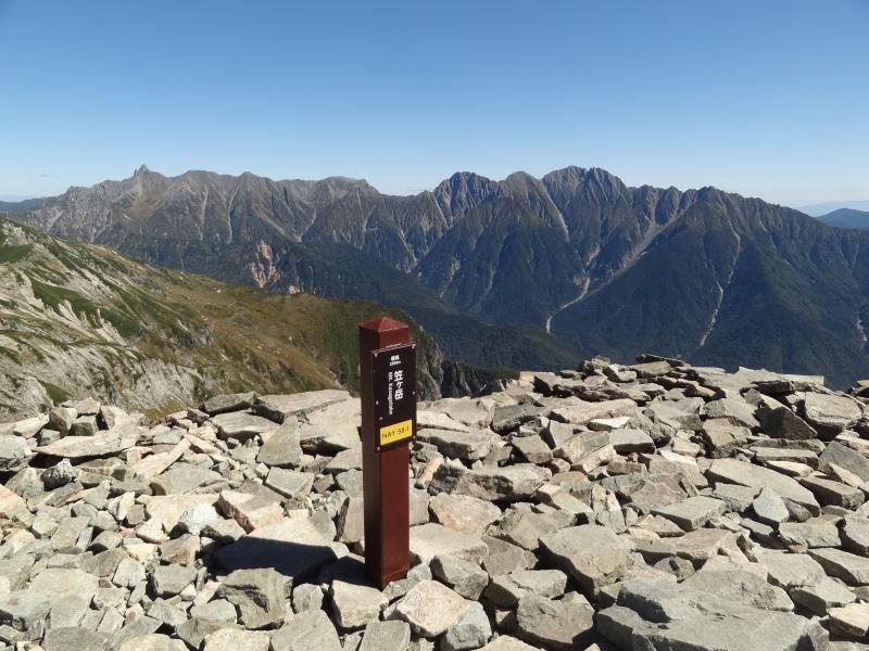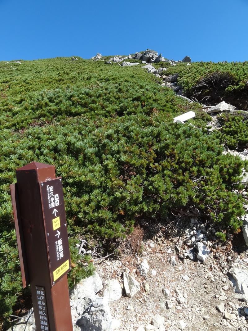④笠新道は急というより長いのが印象で、100m標高ごとに看板が出てきます。杓子平まで登ってもそこから主稜線までがまた長いです。杓子平から見る主稜線は絶景です。紅葉もやや進んでいました。