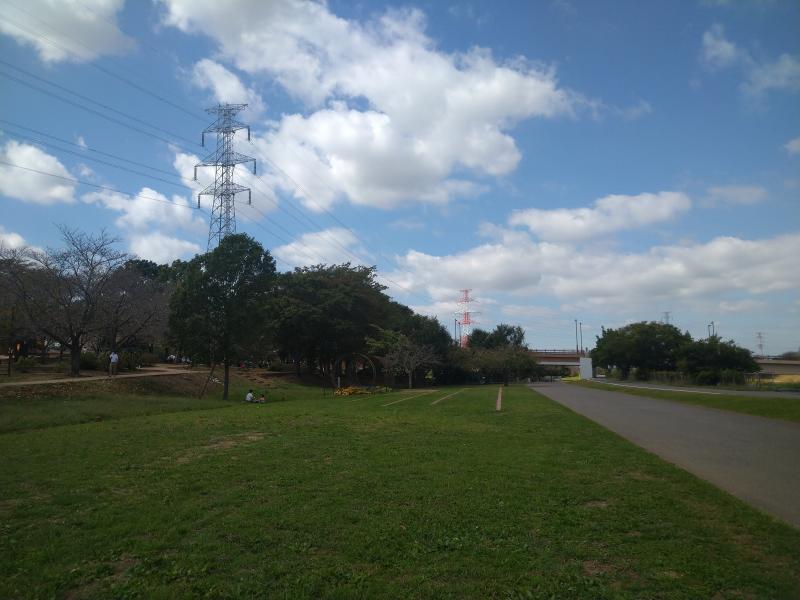 途中、釣りを楽しむ人や公園で遊びまわる子供たちなど