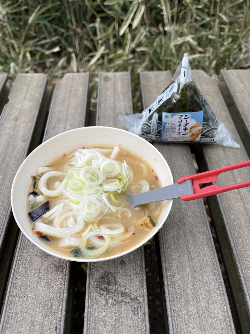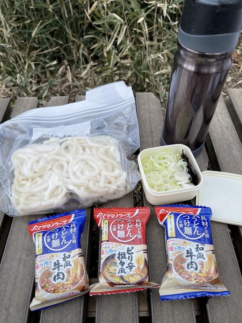 家から冷凍うどんをジップロックにいれて移動中に自然解凍。