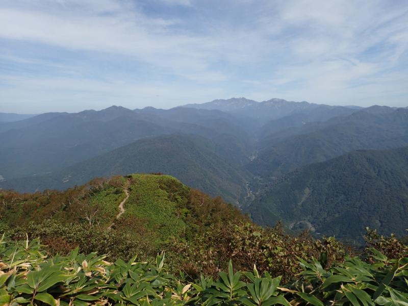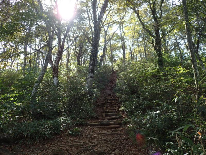 - 中出コース同様に全体的に良く整備されており、危険個所は少ないと感じました。もちが壁の上り下りも慎重に歩けば問題ないと思います。先月訪れた時と比べ、登山道は乾いており、スリッピーな感じは少なく感じました。10月は思えないほど気温が高く、8月の終わりのような空気感でした。下りは長く厳しいのでストックやサポートタイツの導入がおススメです!