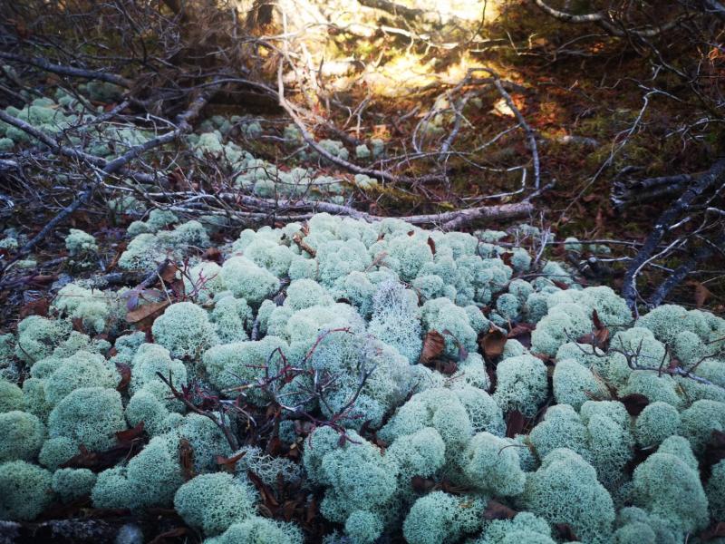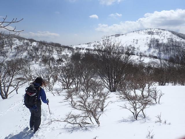 再び樹林帯に差し掛かり西側を巻く登山道を歩いていると、カサカサと落ち葉を踏む足音。鹿でもいたかなと徐に左下方に目を向けると、真っ黒いシルエットに背筋が凍り付きました。そこにいたのは同じくフリーズした一頭の小熊。胸元の白い月の輪がはっきり見えたかと思ったら、向こうから一目散に逃げていきました。我にかえって足早に立ち去り、出来るだけこの樹林帯からは離れることにしました。小熊との距離は僅か3~4m、ここまで接近したのは初めてです。こちらも肝を冷やしましたが、あちらも相当驚いた様子でした。穏やかな一時を邪魔して申し訳なかったです。