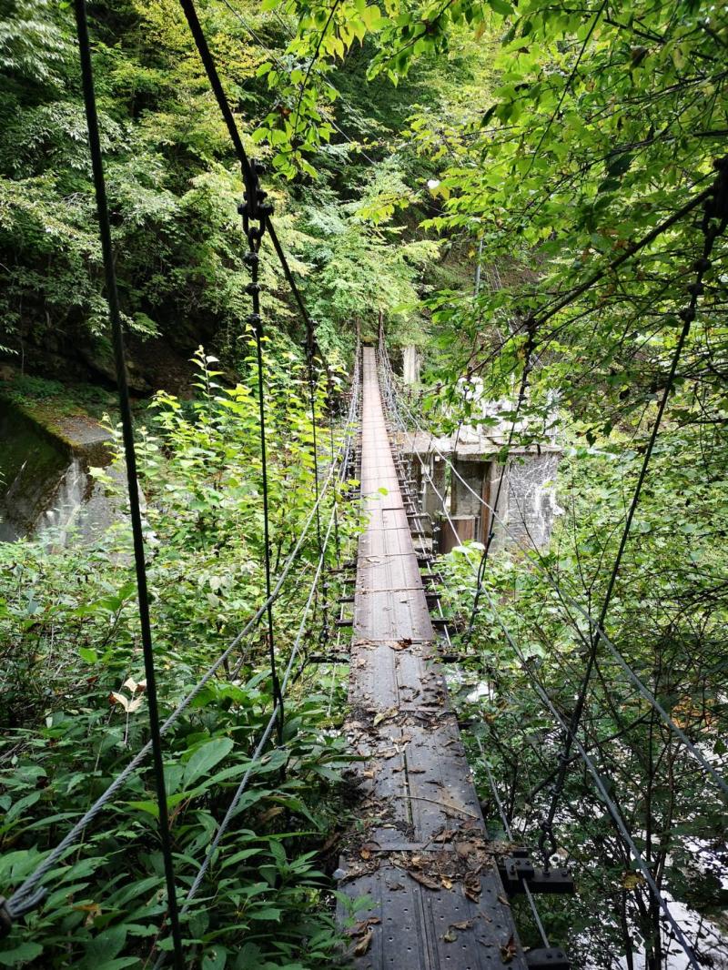 途中美人林のようなブナの広場があったり、安定した吊り橋や安定しない吊り橋があったり、長いコースの割に変化に富んでいて飽きのこない下りでした。