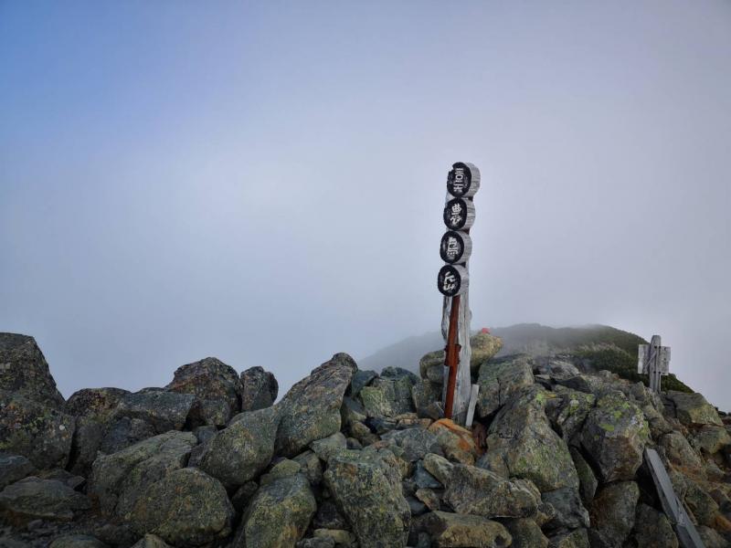 明日できたら農鳥岳も踏みたかったので、もう少し先まで進むことに。南峰から僅かで展望抜群の北峰へ。ここでビバークするという男性と少しお喋りしてさらに先を目指します。