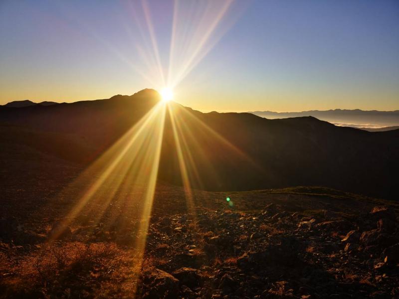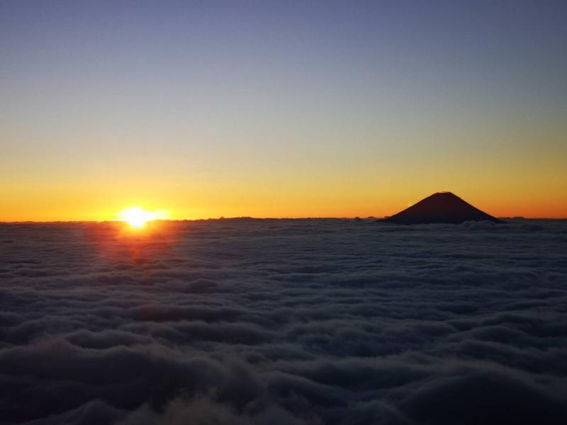 分厚い雲海の地平線から朝日が顔を出した瞬間、山肌は薔薇色に染まり、私もろとも暖かい光に包まれました。思わず手を合わせてしまうほど感動的な光景で、今この場所にいることに感謝したくなりました。これまでいろいろあったけど、これからもたくさん試練はあるだろうけど、前に進んで行こう。そんな気持ちが芽生えた、素晴らしい朝でした。