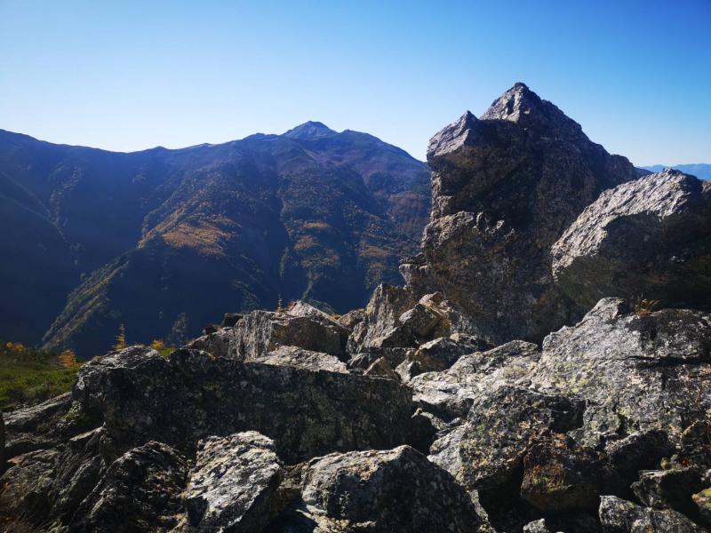さらに感動を求めて先へ進みます。景色に気をとられてコースアウト、誰も見ていないのを良いことにハイマツの海をもがきながら必死で復帰するという場面が何度かありました。