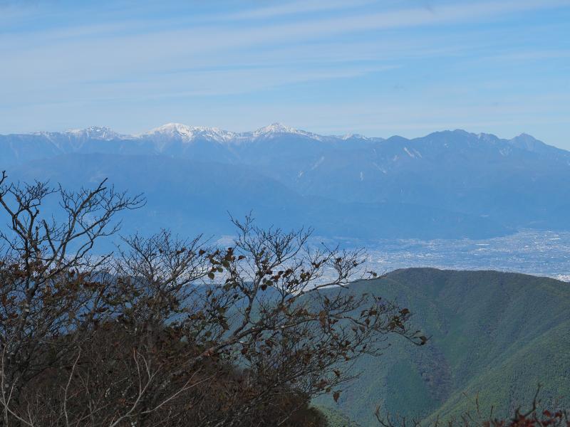 雪頭ヶ岳頂上に到着。富士山の写真を撮ろうとしてると何かが近づいてくる…結局姿は見えず何だったのか…富士山冠雪してますね♫西湖と合わせてよく見えます。次は鬼ヶ岳へと思ってたらまた雪頭ヶ岳の山頂標識が。そしてちょっと滑りやすいトラロープの有りの場所を下り、登り返して鬼ヶ岳に到着。ちょっと雲が増えてきてしまい風が吹いてきて寒いのでベースレイヤーの上にウィンドシェルを。南アルプスは白峰三山、塩見岳、悪沢岳、赤石岳は真っ白に。北アルプスも真っ白です。八ヶ岳はほんの少し稜線が白くなってました。