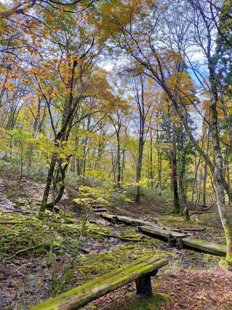 遠くの山が見える展望があるところはあまりないですが、天然林の中で十分ですよ。