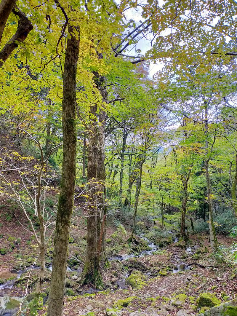 - 昨日雨が降ったようで、元々沢沿いでぬかるみが多いのに更に多く感じました。石がゴロゴロしている道なので、足元は不安定です。ハイカットのシューズが良いと思いました。手袋とストックもあると良いです。