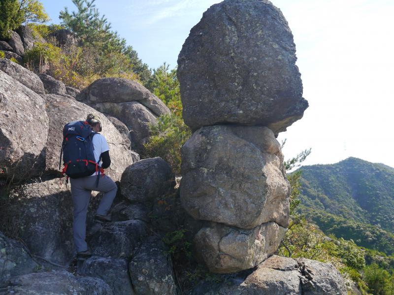 ・桶居山はじめ、縦走路は、大きな岩で構成された山が続きます。岩場では道が不明瞭になりますが、よく見ると通行した形跡が認められますのでしっかりルートファインディングしましょう。