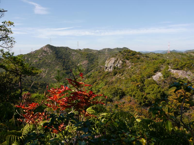・大きな樹木が少なく、夏は避けたい高御位山ですが、樹木が少ないということは、展望が良いということでもあります。本ルートも姫路城や播但線沿いの山や町並み、南に家島諸島、東に淡路島、六甲連山と贅沢な眺めが続きます。
