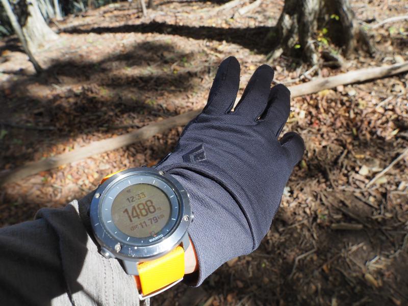 薄手のフリース生地などの手袋は必須。手袋は付けたり、外したり。そしてさらにレイングローブも持って雨や温度変化に対応できるようにしています。