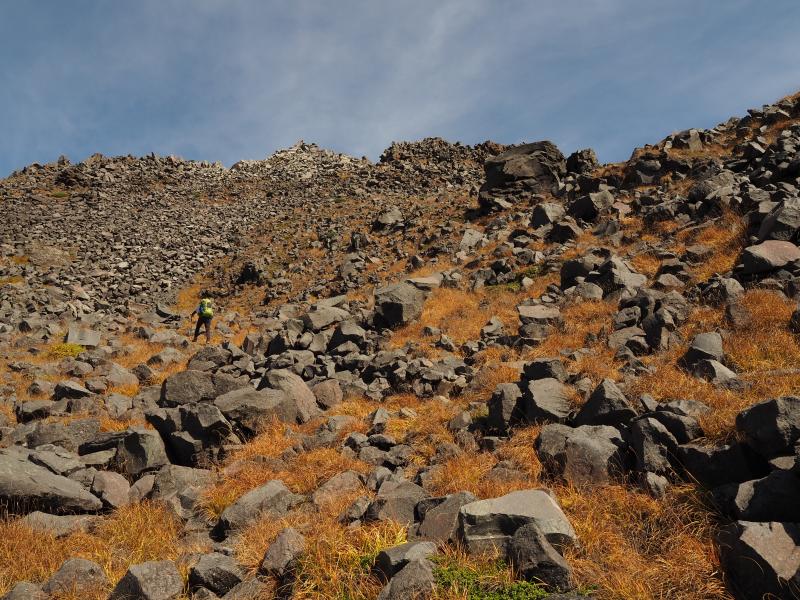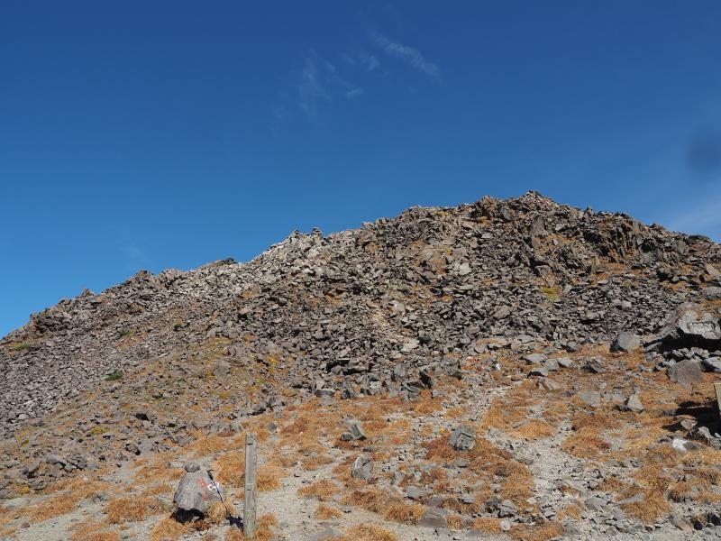 ここまで登るといままで隠れていた山頂が見えるようになります。分岐まで山頂を見据えつつ2時間半以上の道のりをひたすら進みます。