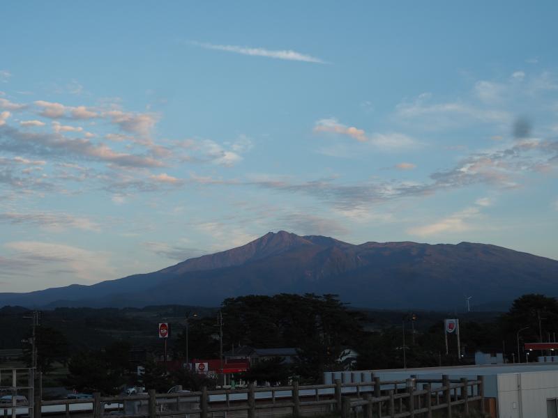 前日は近くの道の駅で車中泊。車道から見えた鳥海山のかっこいいこと!ワクワクです。