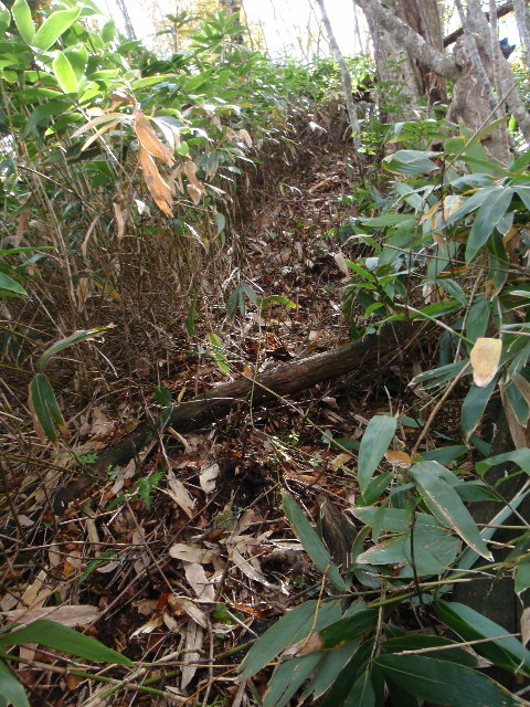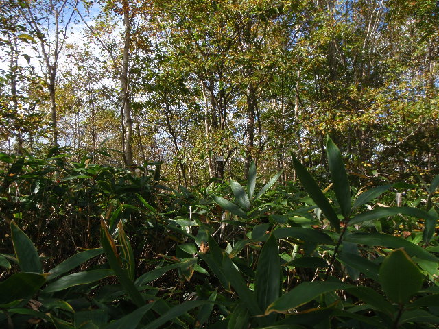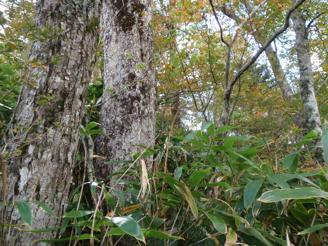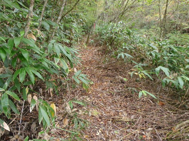 - 黒井沢から真っ直ぐ林道歩き30分、林業作業用の刈り払いの熊笹道は、まるで”剣山”絶対にコケられません!!人間バーベキュー(串刺し)に成ります