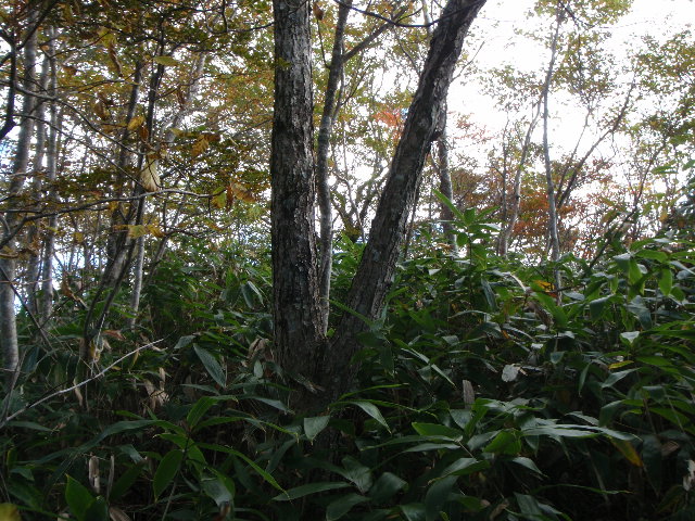 山頂手前約500m手前からは完全な藪で、一部急登です、握れる笹は幾らでも有るので落ちる事は有りませんが(^^; 前にも進みにくいです