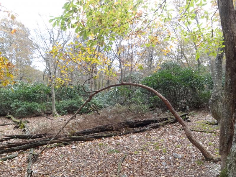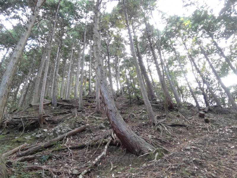 ⑧杉林を超えると二次林の癒しの空間になりますので適当に休憩できます