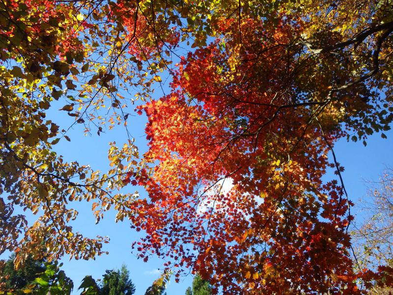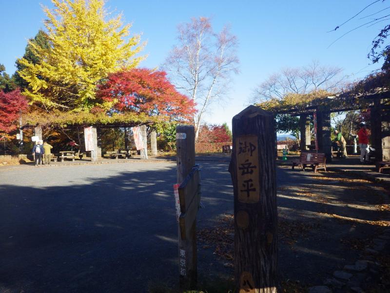 御岳平や御嶽神社周辺の紅葉が見頃を迎えて赤や黄色に染まっていました。