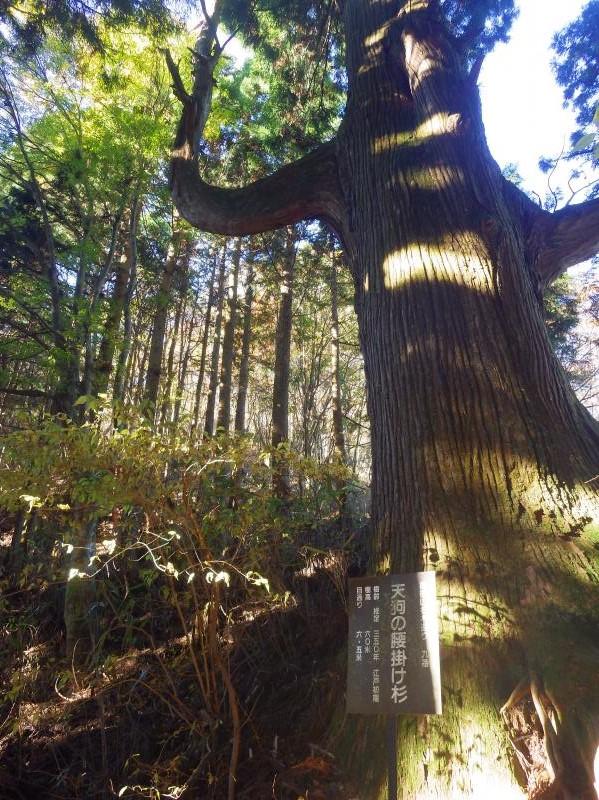 そうなんです。本当は奥の院、鍋割山へと行くつもりだったのに巻き道で芥場峠に向かってしまってました!先ほど【天狗の腰掛杉】という立派な杉の木があり、本当に腰掛けだぁーなんて感心していたあの場所が分岐だった!!!なんてこと。
