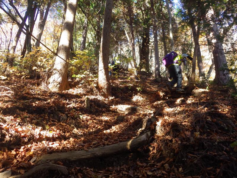 - 落ち葉で登山道の凹凸が分かりにくくなっているところがあり、石や木の根に乗ったり滑ったりしないよう注意が必要。
