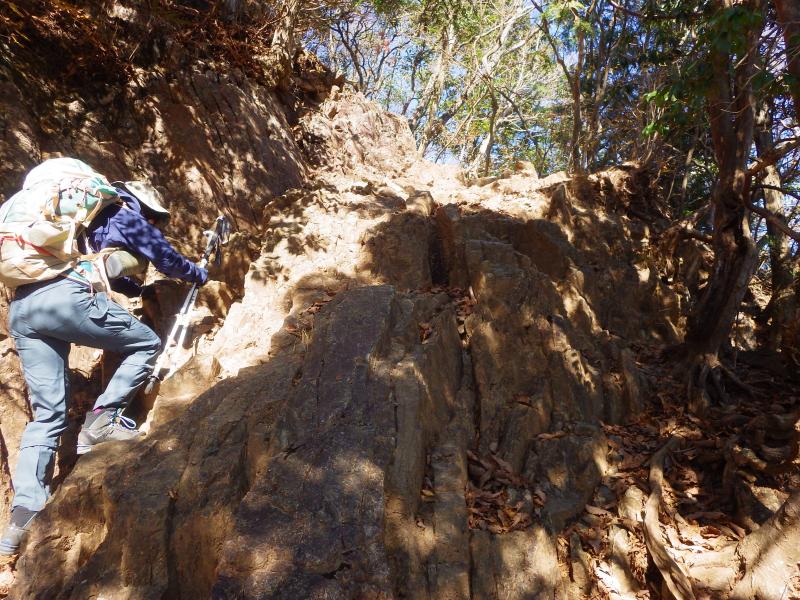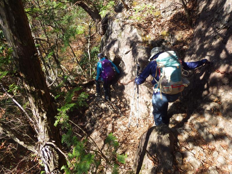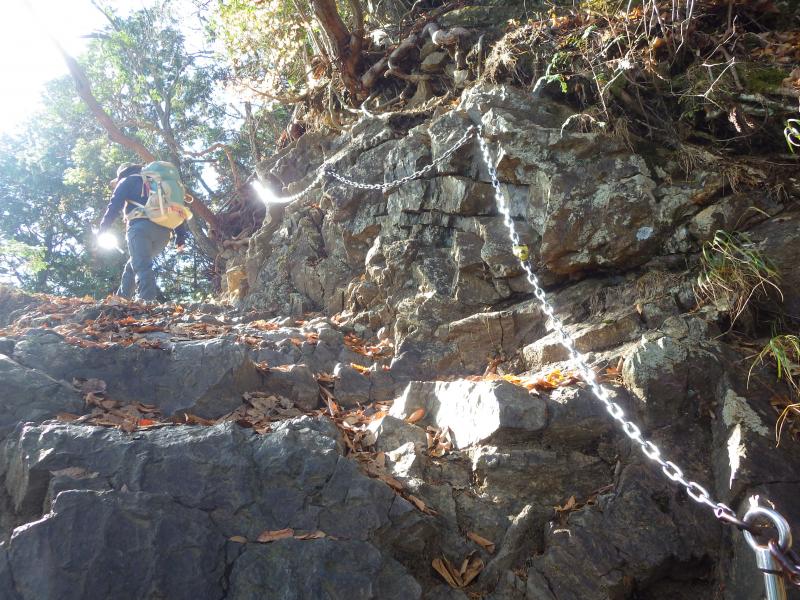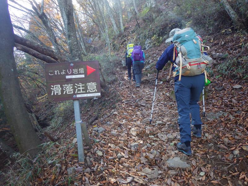 芥場峠からは次第に足場が悪くなり滑落注意なんて看板も。気を抜かず慎重に。