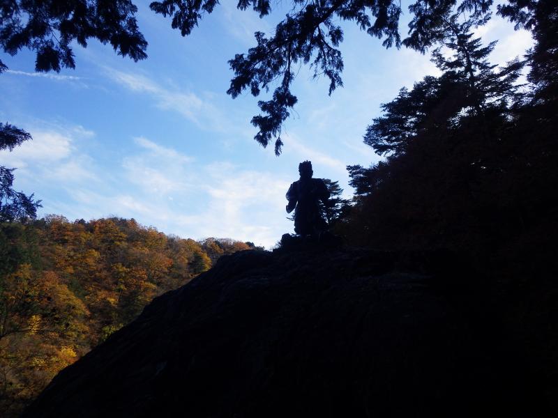 突き出した天狗の鼻のように見える天狗岩。この岩登れたんです!鎖が見えたのでもしや?と思ったら登れました。そして天狗岩のてっぺんには天狗様がいました。