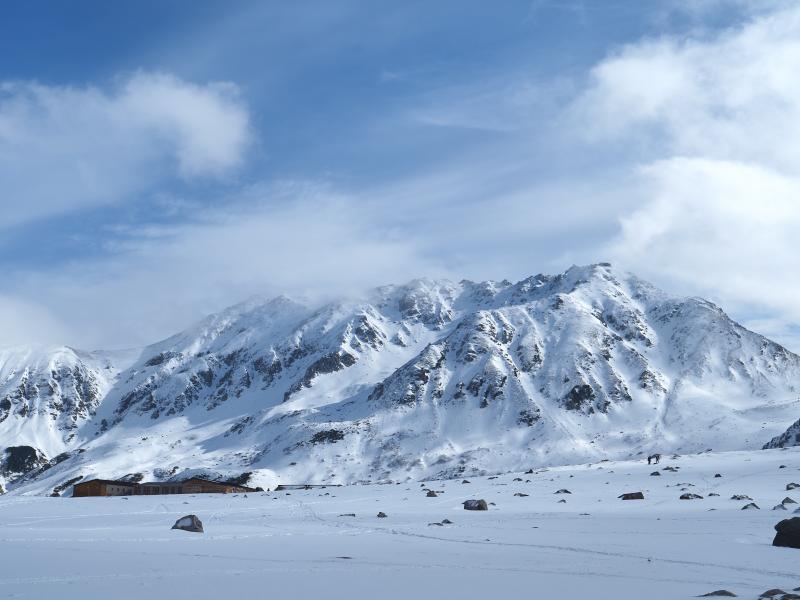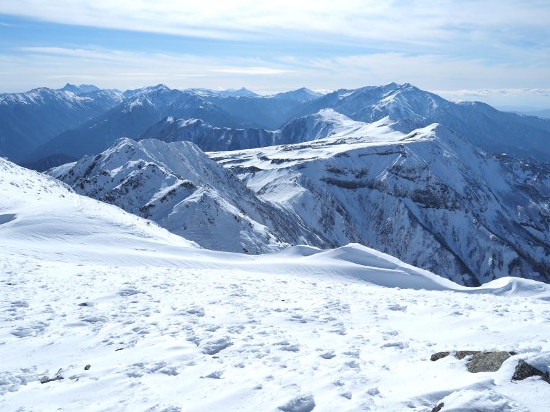 室堂到着が10:00になるので1日目は短めの行程で室堂〜浄土山〜一ノ越〜雷鳥荘で。始めはつぼ足で、浄土山登山口からは斜度が急になるのでアイゼン付けて浄土山へ。なかなかに息が上がってしまいましたが浄土山に着くと目の前に雄山が。浄土山から富山大学研究所への稜線は風が強くて寒い!急いでハードシェルを着用。龍王岳の存在感。立山カルデラ、五色ヶ原、薬師岳、黒部五郎岳、笠ヶ岳等々の素晴らしい雪景色が見えました♫