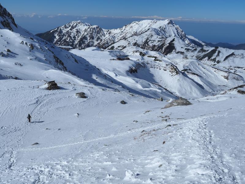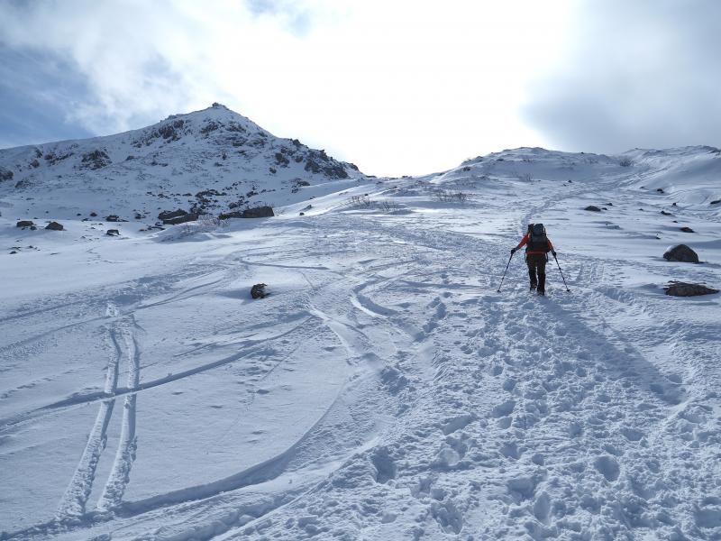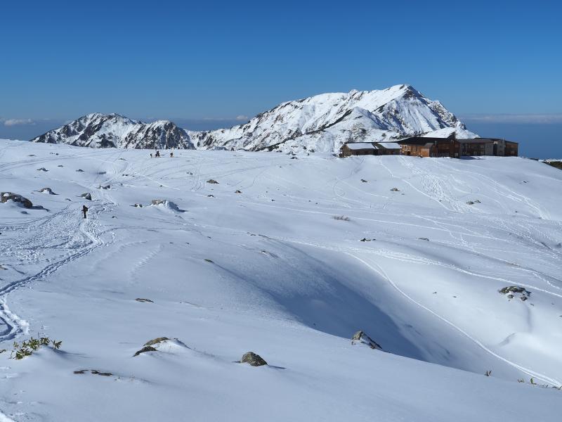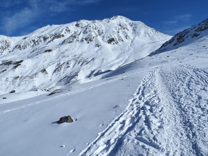 沢の斜面はまだまだ岩が露出しているところも多く、BCスキー・スノーボードの方は場所を選んで滑っている感じでした。