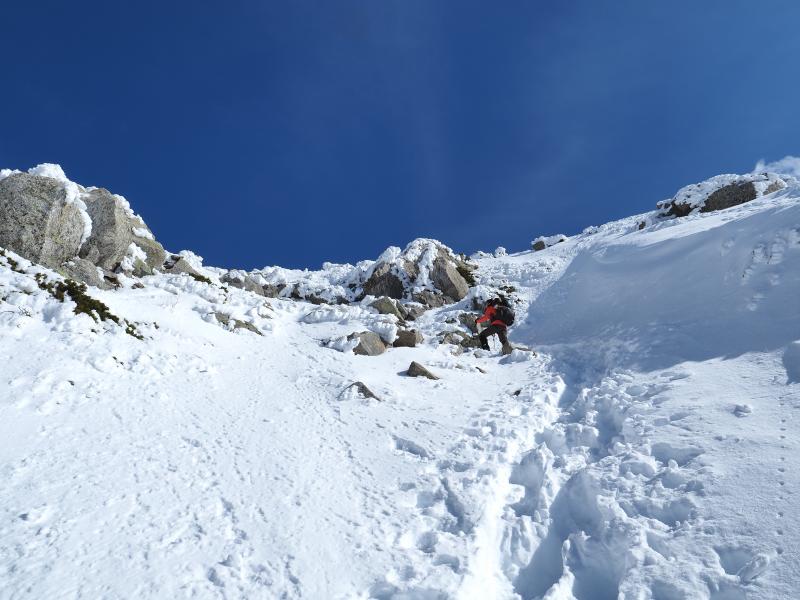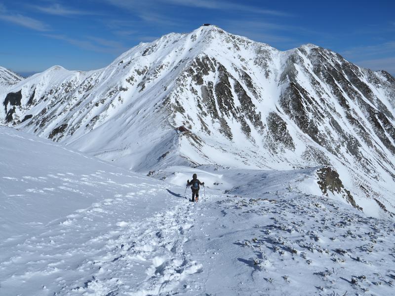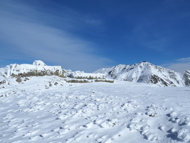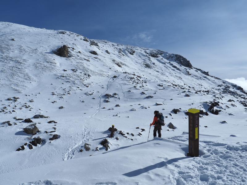 稜線は冷たい風が強く気温以上に体感温度は低かった。日向は5℃くらいのところもあり。