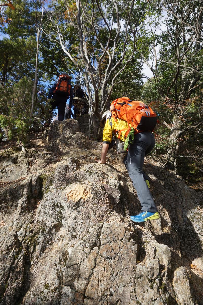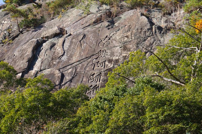 最初の見所、名号岩はロッククライミングも行われる場所で、当日もクライマーの方がおられました。